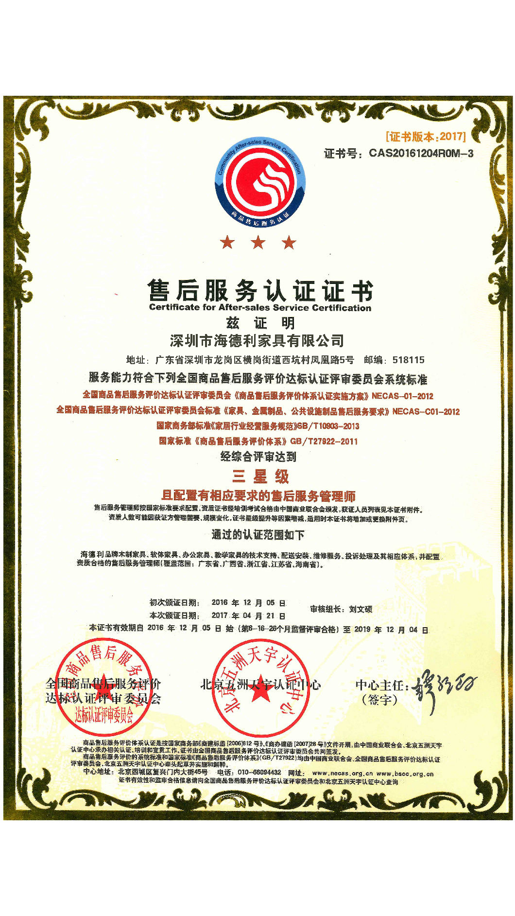 對每一件家具的生產,和每一項服務,德一都是按照5星級標準。